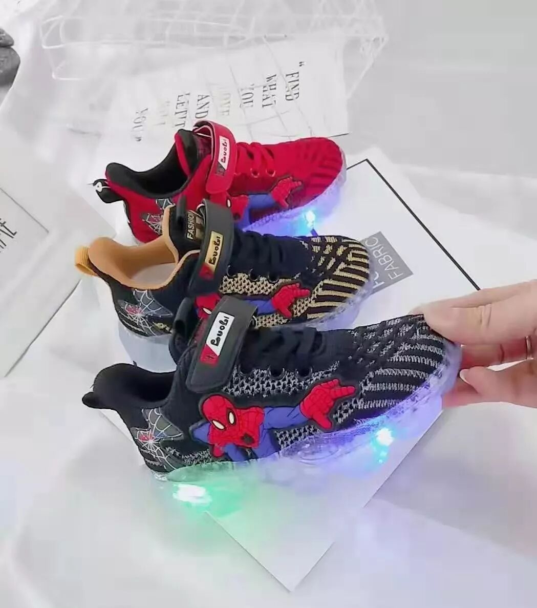 这款蜘蛛侠飞织鞋面闪灯果冻底